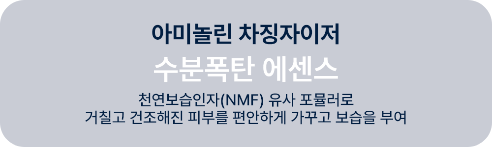 천연보습인자(NMF) 포뮬러로 거칠고 손상된 피부에 급속 진정과 보습작용을 하는 수분 폭탄 에센스