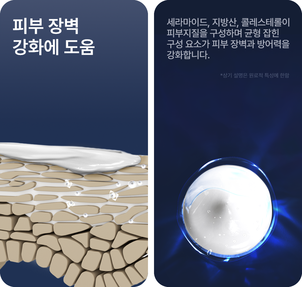 손상된 피부에 보습력을 높여주며 피부 지질을 채워 장벽을 강화해주는 영양 크림