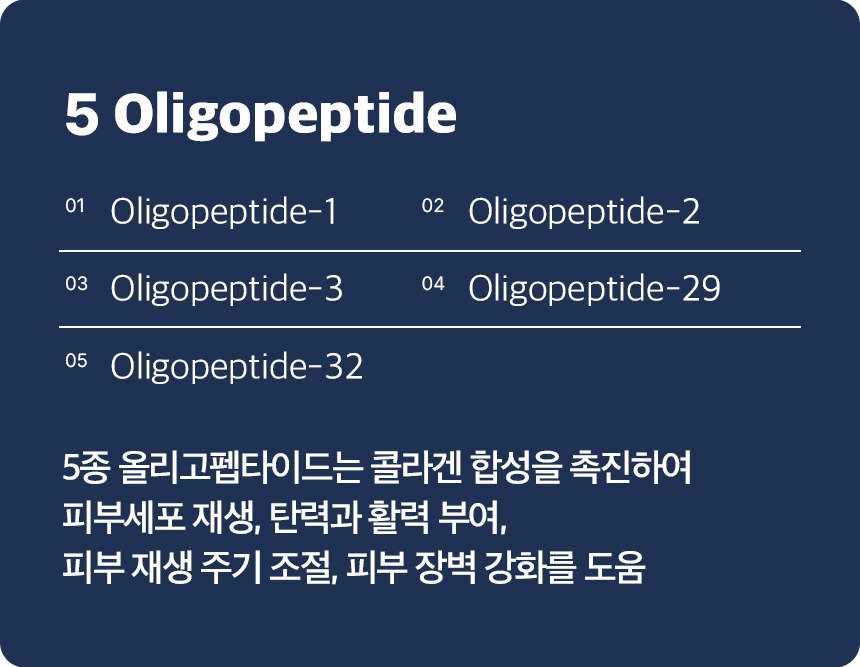 | 핵심성분 | Oligopeptide-1, Oligopeptide-2, Oligopeptide-3, Oligopeptide-29, Oligopeptide-32 |