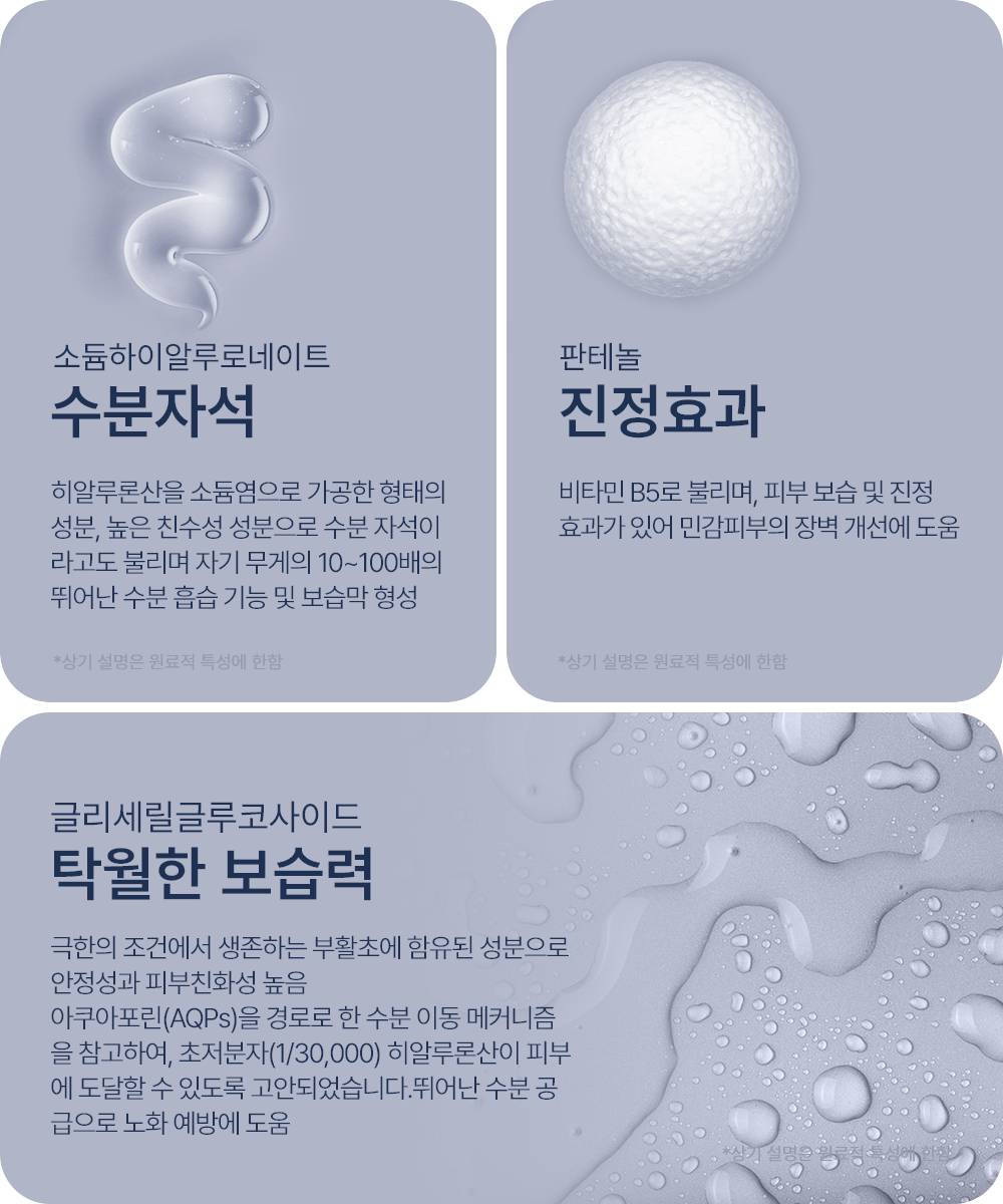 | 추천피부타입 | 모든 피부, 민감성 피부, 수분부족형 지성피부 |